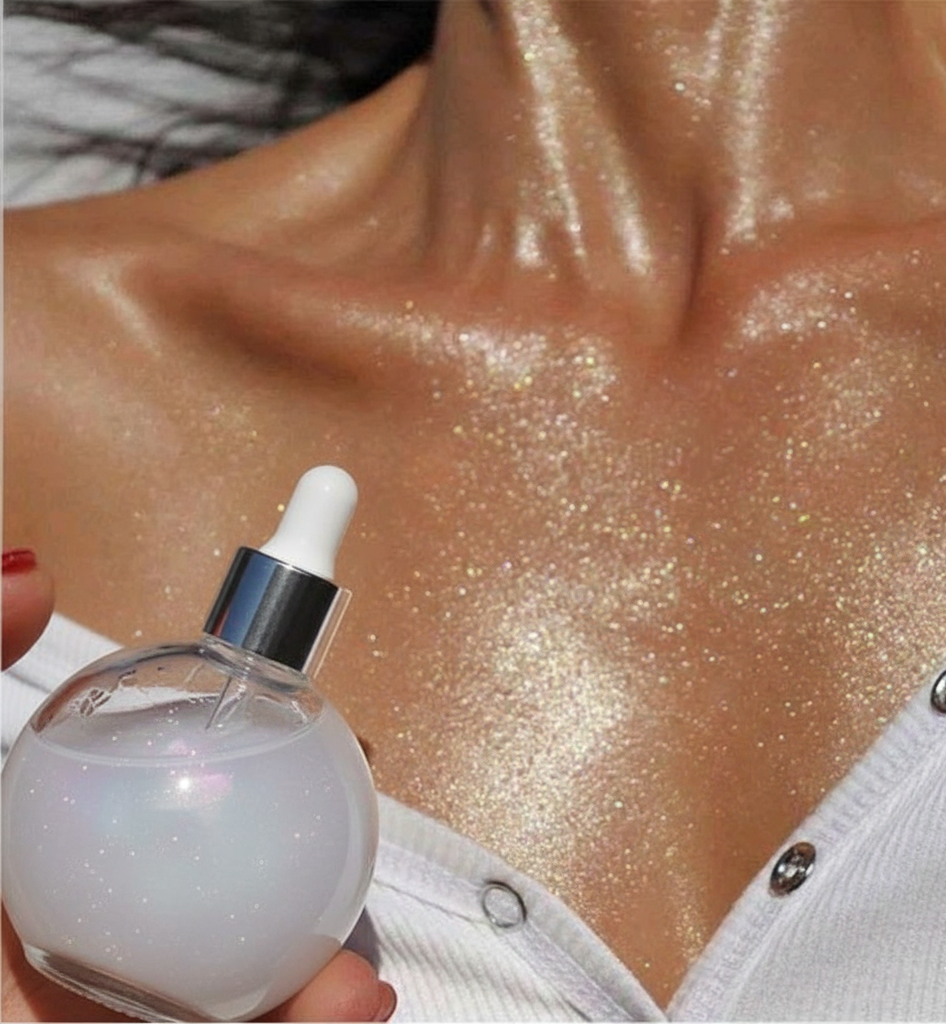 A versatile liquid highlighter and body shimmer oil for an illuminated, radiant complexion